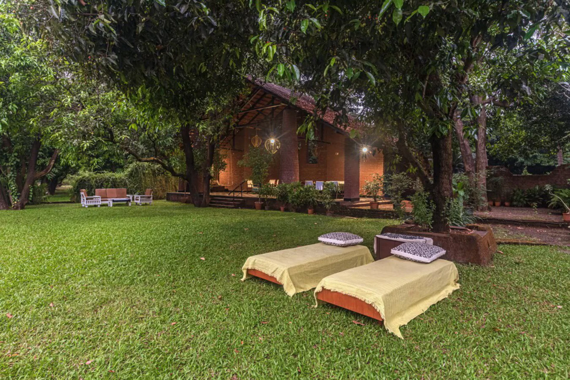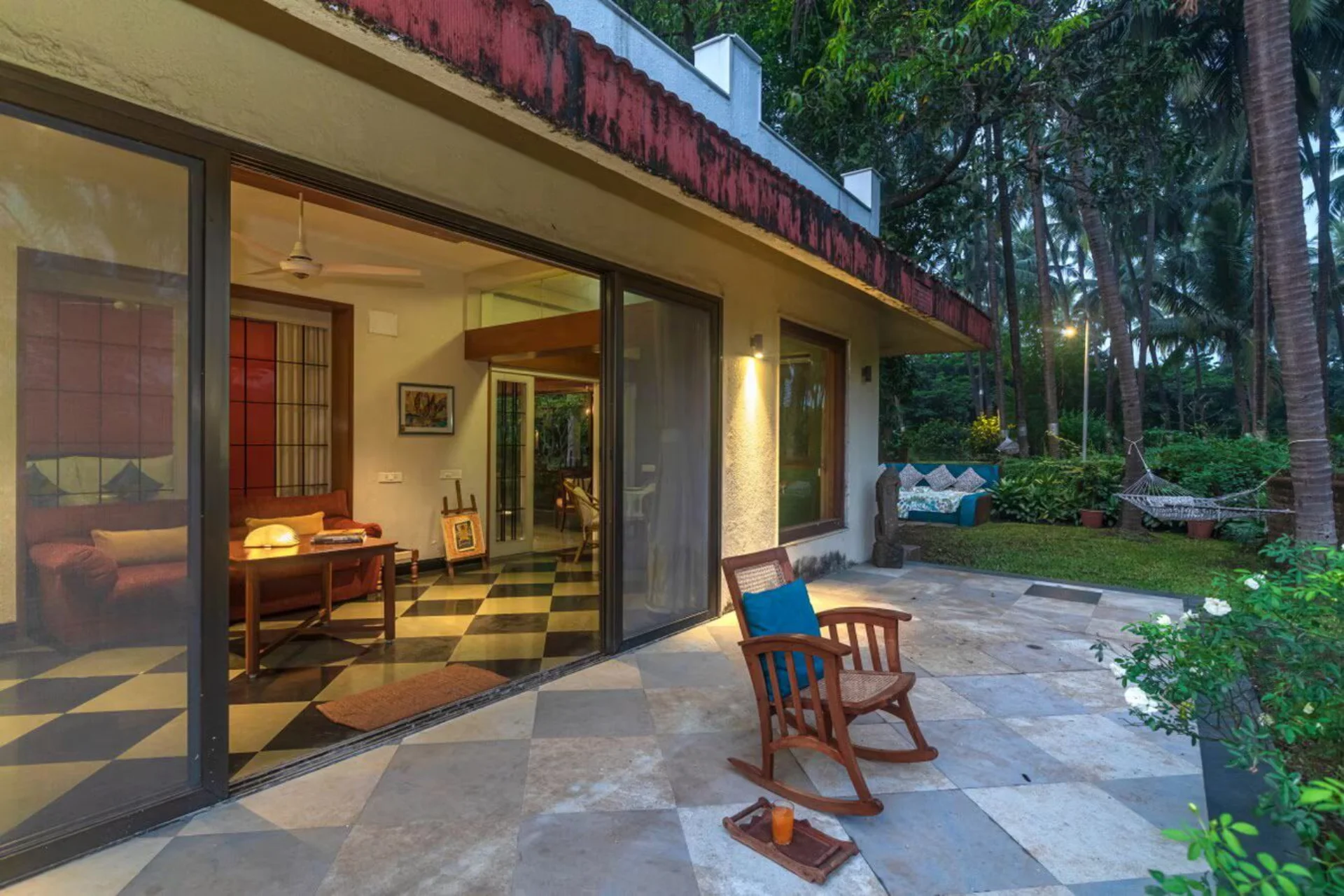 Luxury 2 BHK Villa With Lawn In Karjat Experience the rustic allure of VODMH137 Villa in Karjat, a two-bedroom pool villa nestled among mango orchards, complete with a gazebo, an open-air swimming pool, and a serene in-house library. Relax with board games, hammocks, and delightful vegetarian meals.