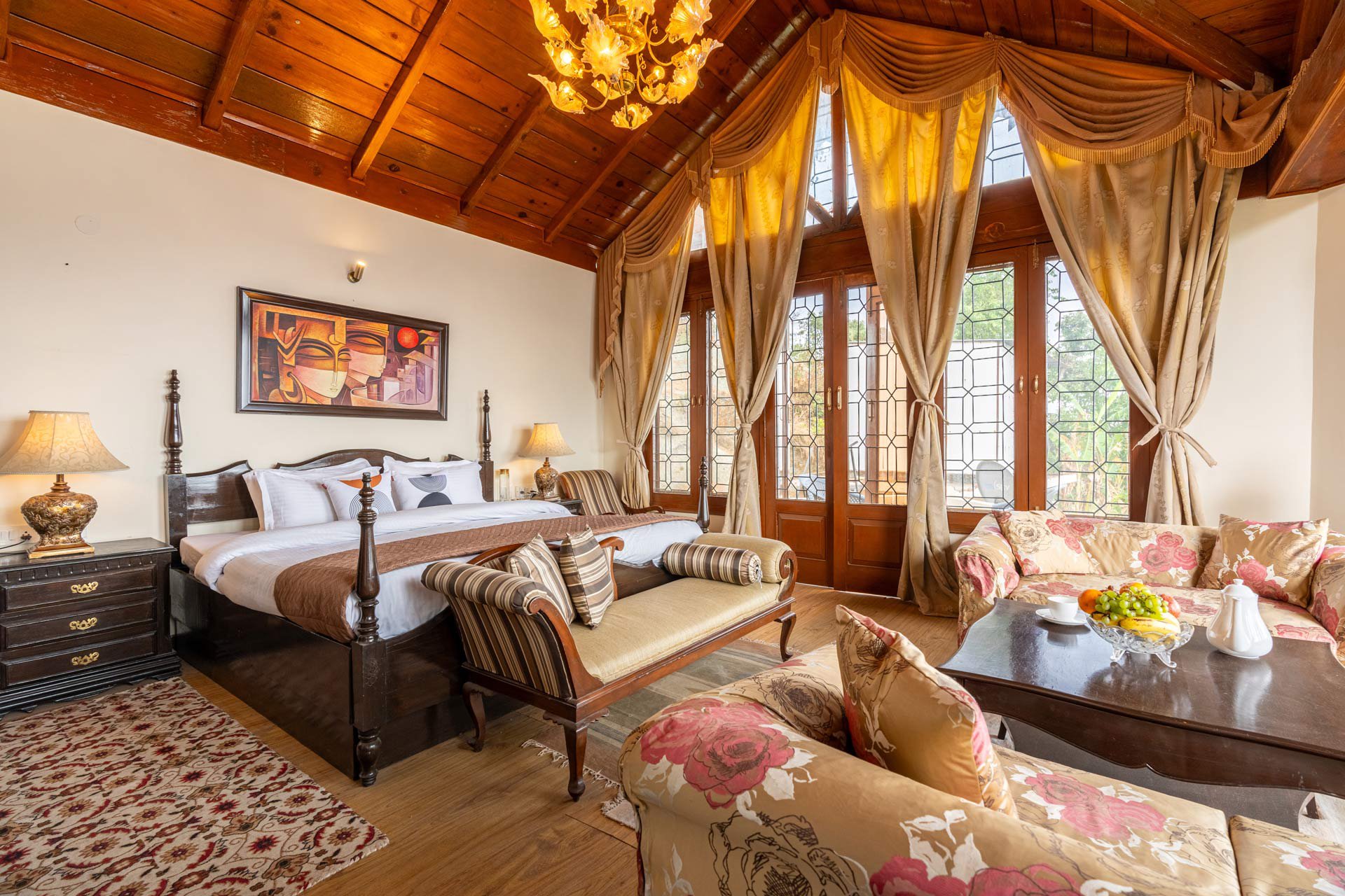 Situated in the serene surroundings of Bhimtal, VODUK50 Villa beckons. As the sun casts its warm glow on the villa’s cream-colored facade, this charming residence offers a haven of tranquility and beauty. Upon entering, one is transported to a space where time seems to pause and hearts can find solace. The villa features three generously sized bedrooms, each enhanced with wooden details, providing restful retreats for weary travelers. Every window showcases nature’s artistry, revealing stunning vistas of verdant landscapes and picturesque skies.