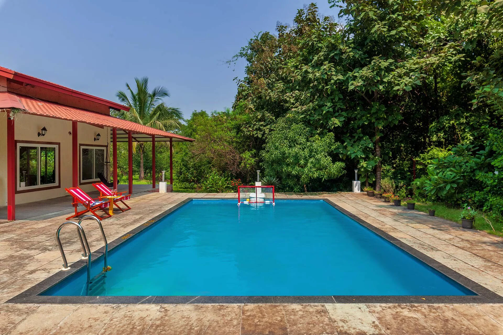 This pet-friendly residence provides stunning views of the verdant Sahyadris and serves as a timeless retreat within the winding forests. Take a moment to relax and rejuvenate in the pool, or indulge in joyful play on the spacious lawn; this home, adorned with its elegant wooden furnishings, presents numerous chances to enrich your collection of cherished memories. This villa is situated 81 km from Chhatrapati Shivaji International Airport, 18 km from Karjat Railway Station, and in proximity to attractions such as Kothaligad Fort, which is 23 km away, and Panorama Point, located 28 km from the villa. Additionally, Bhivpuri Waterfalls is 19 miles distant.
