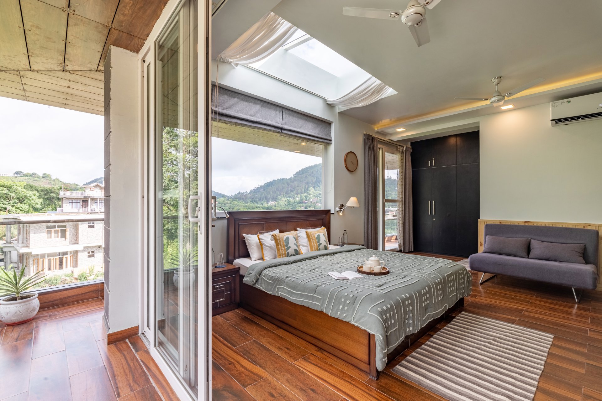 Luxury 3 bedroom villa in nainital VODUK08 is an enchanting villa located in Naukuchiatal, Uttarakhand, distinguished by its skylights. This remarkable retreat boasts 3 tastefully appointed bedrooms, each equipped with skylights and balconies, alongside a sophisticated living area that includes a bar counter, a music system, and breathtaking views.