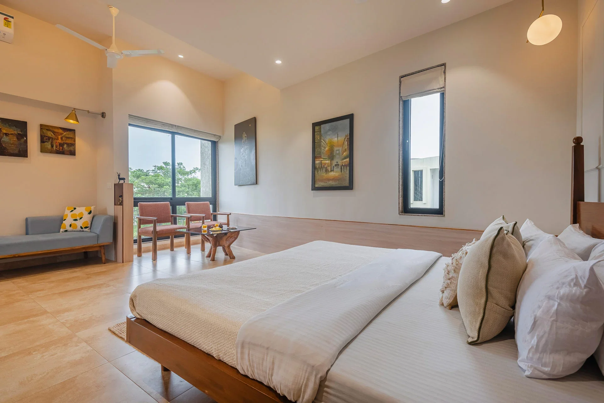 Each bedroom serves as a sanctuary of unmatched luxury. Guests have the option to relax in the upstairs reading room or appreciate the tranquil views from the balcony. Whether one opts to unwind amidst the greenery or indulge in the villa’s refined comforts, VODMH189 Villa guarantees an unforgettable experience. Upon entering the gates of this villa, visitors are welcomed by a lush lawn and a patio embellished with blossoming flowers. The villa exemplifies luxury with its distinctive exteriors and tasteful decor. Inside, the sophisticated living room offers an ideal space for relaxation. Situated 98 km from Chhatrapati Shivaji International Airport in Mumbai, the property is located 3 km from Nagaon Beach.We recently spent a magical few days at luxury Villa in Udaipur booked through Villas On Demand and the entire experience was so amazing. Every detail of our stay was Carefully planned, making this trip an unforgettable one for all of us.
