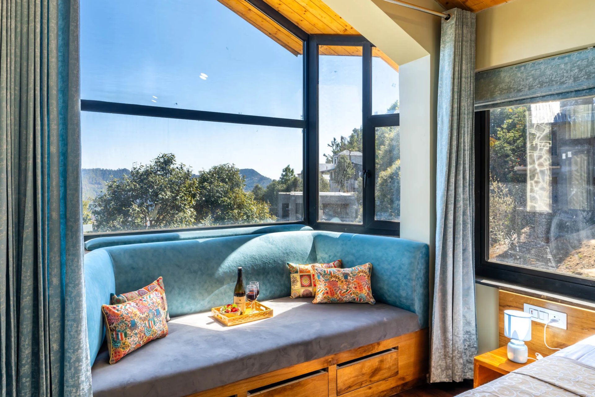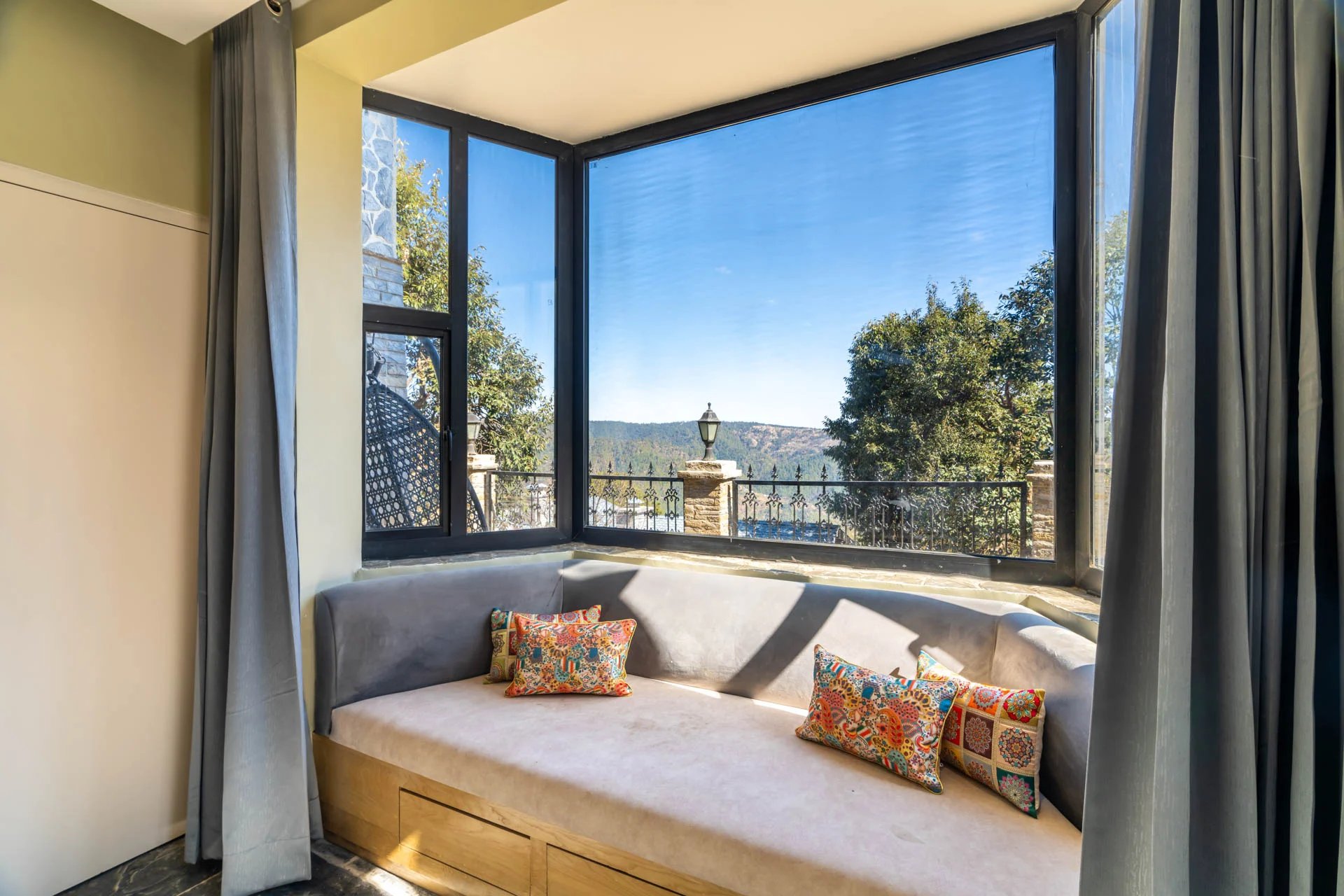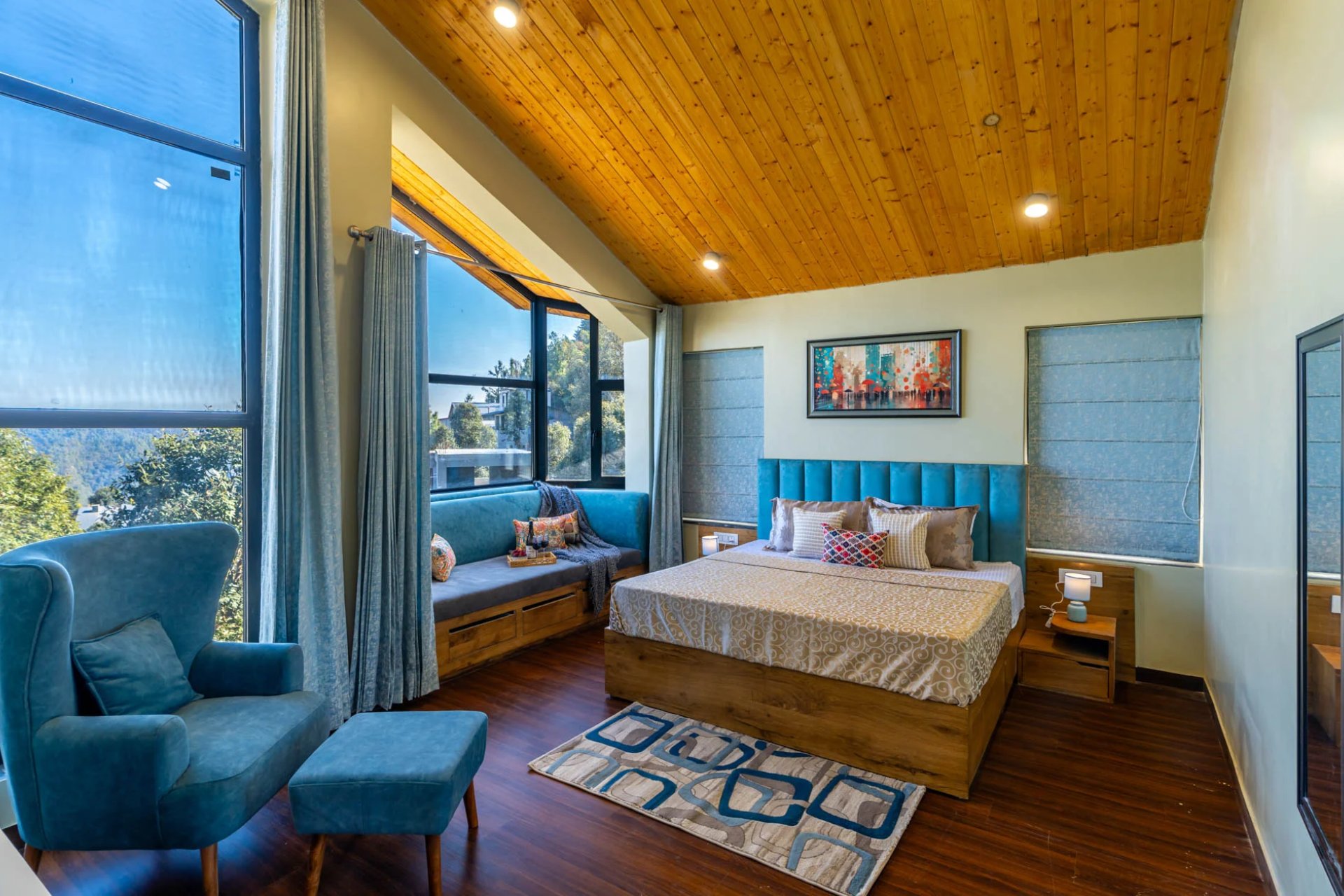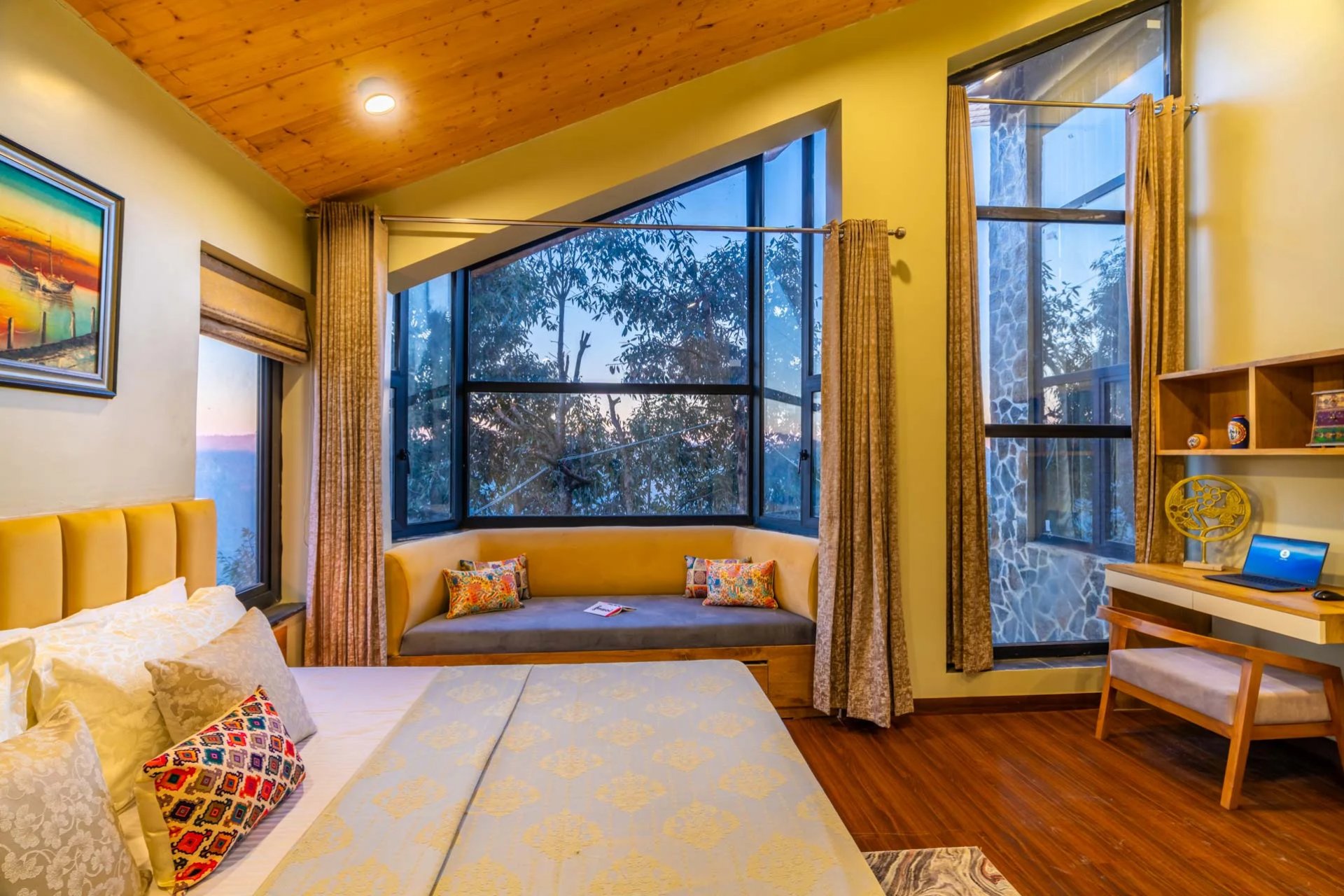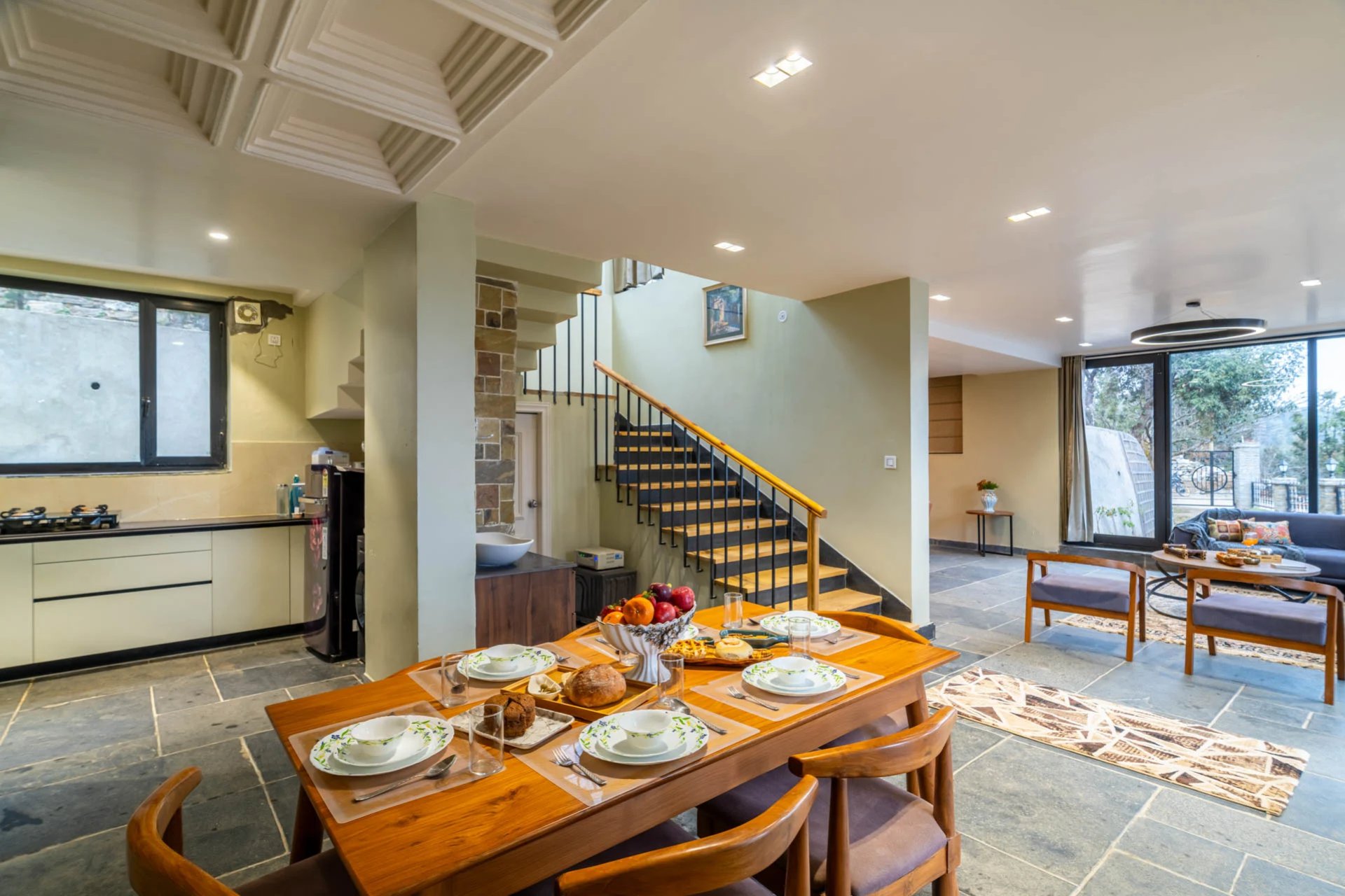 Nestled amidst stunning mountain vistas, it boasts a well-maintained lawn with delightful seating areas, ideal for enjoying the tranquil surroundings. As night falls, bonfire gatherings bring a cozy and inviting ambiance. The exquisite landscaping and visual allure further elevate the villa’s appeal, establishing it as a perfect retreat. Whether you seek a tranquil hideaway or cherished moments with family and friends, this villa represents the ultimate in comfort and memorable mountain getaways. An Asian-style breakfast is offered at the villa. This villa is situated 39 kilometers from Bhimtal Lake and is 98 kilometers from Pantnagar Airport.
