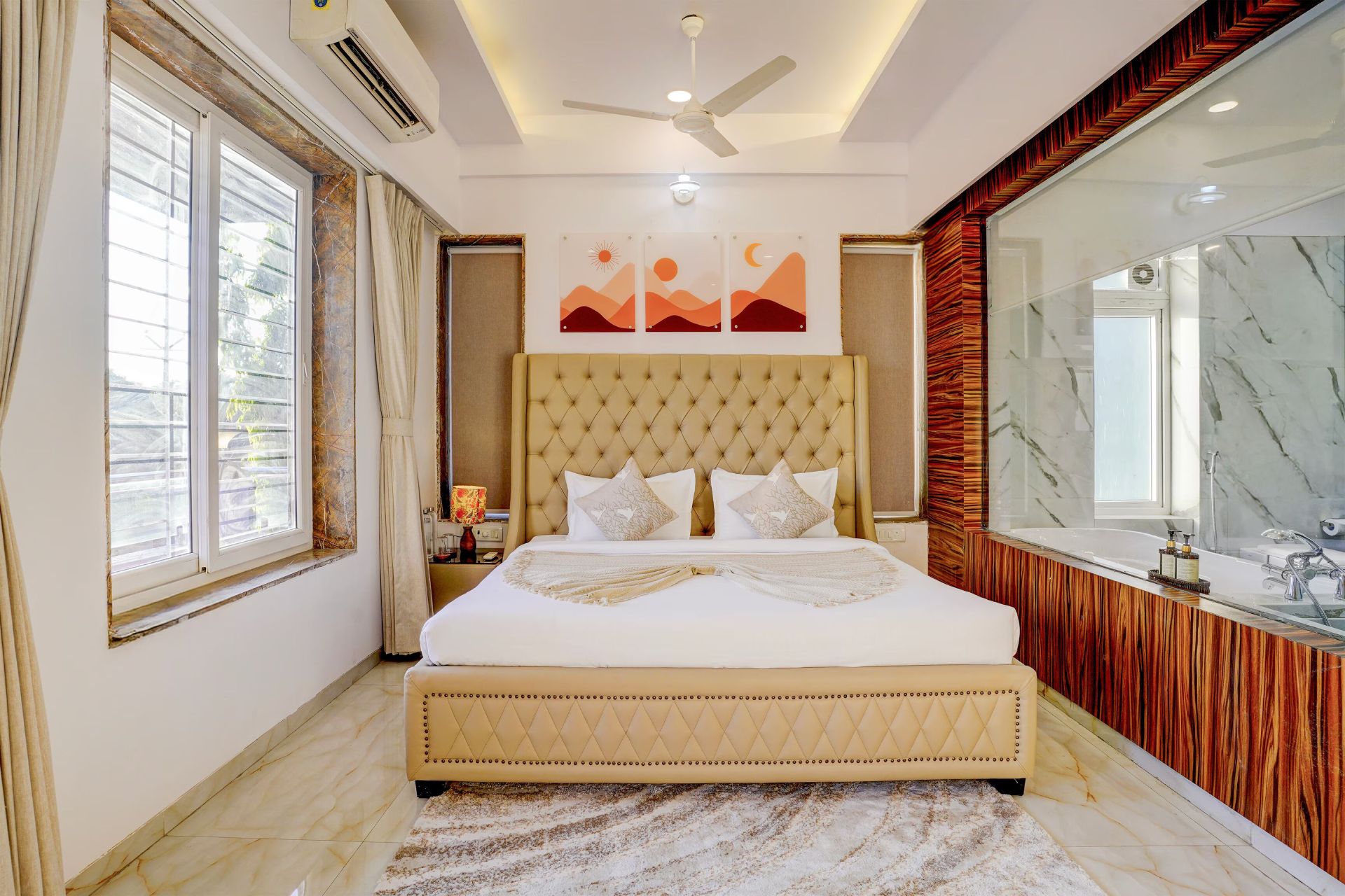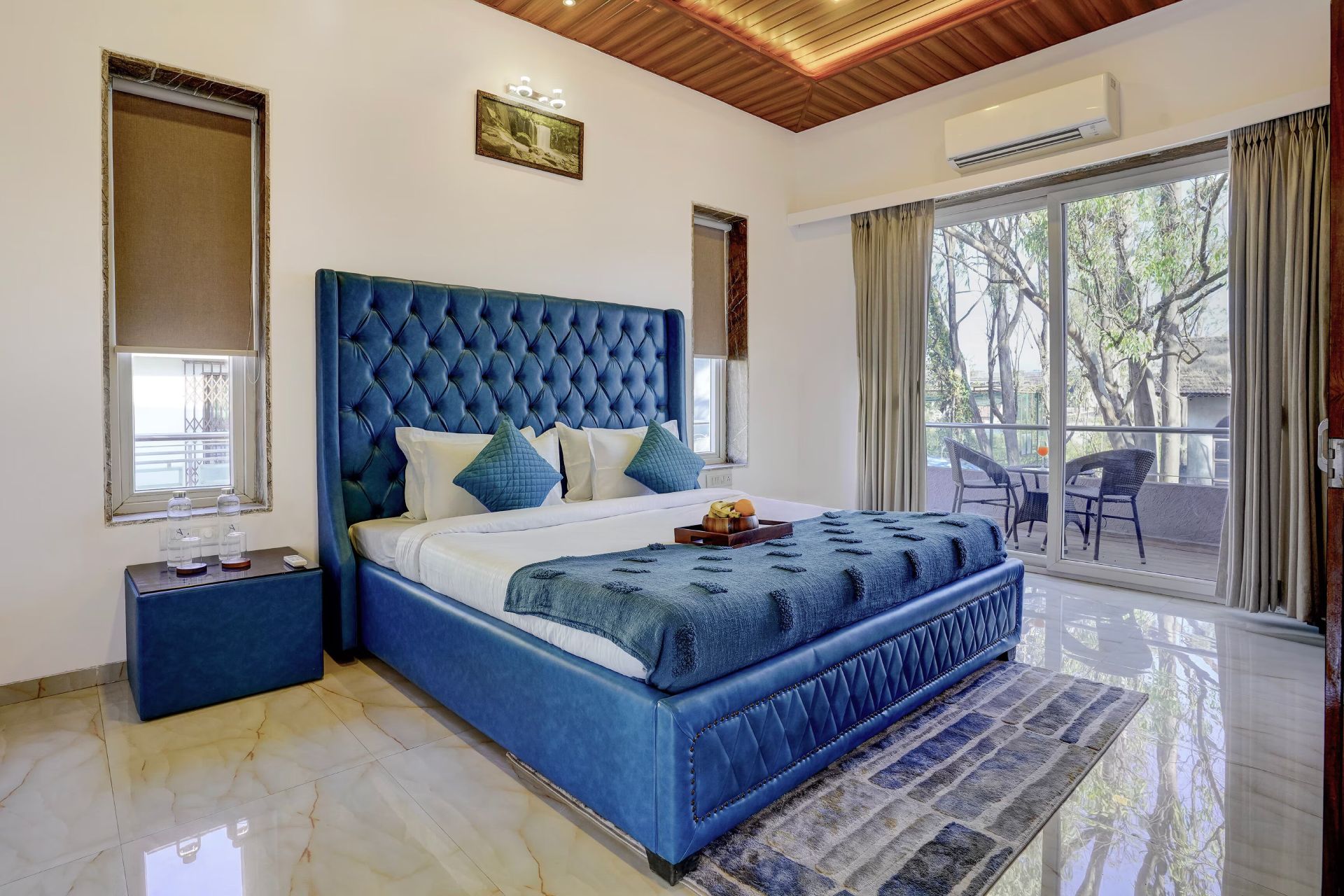 Luxury 4 BHK Villa With Gazebo In Lonavala Prepare yourself for a tranquil retreat at this luxurious 4-bedroom villa. Each generously sized bedroom features its own balcony, with one room offering a bathtub for a rejuvenating soak.