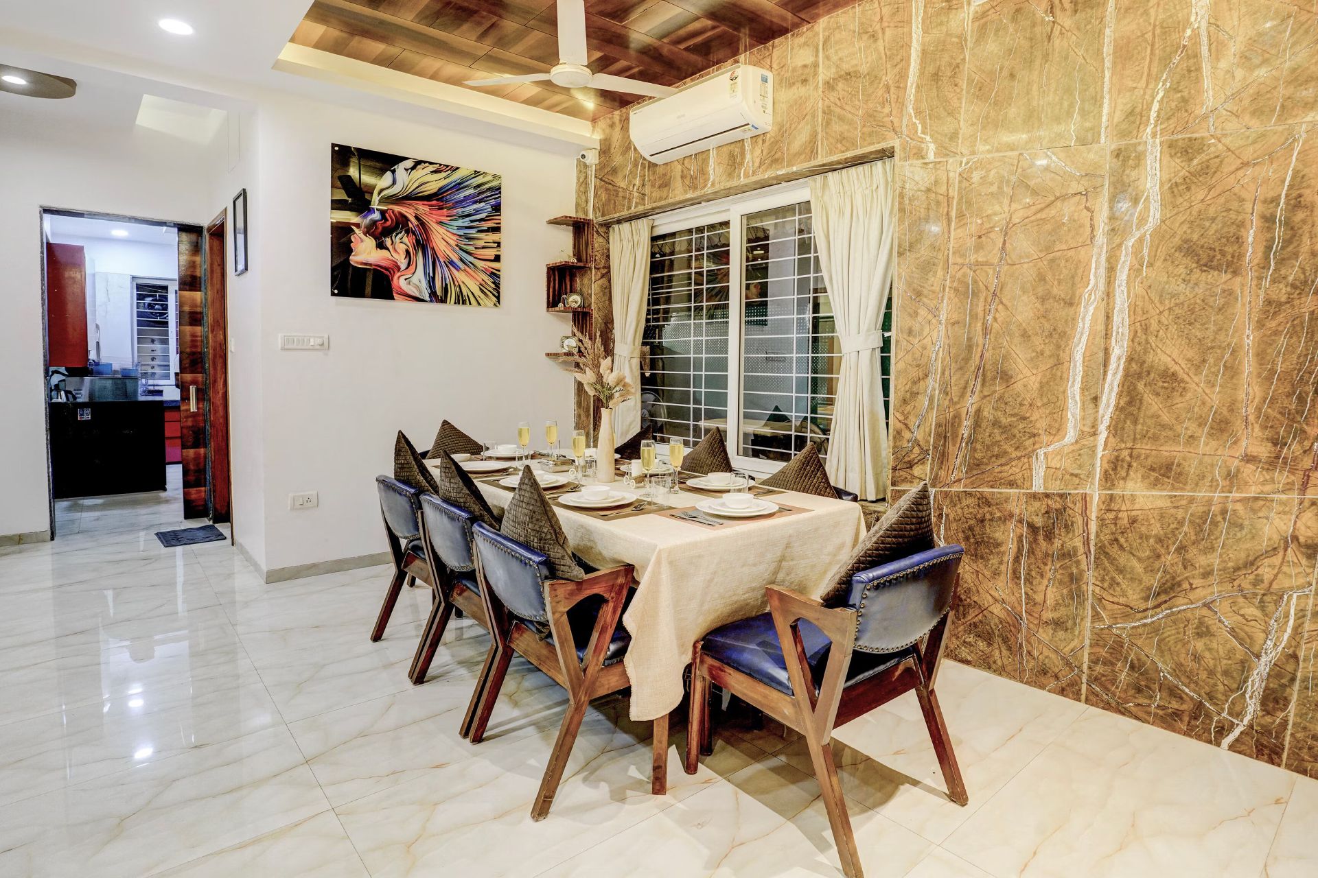 A newly refurbished villa, VODMH62 Villa 4 BHK with Poolside Gazebo & Garden, is available for accommodation in Lonavala. This property features a private pool, complimentary Wi-Fi, and free private parking. Airport transfer services are provided, and car rental options are also accessible. The villa boasts a terrace with views of the pool and includes four bedrooms, a living room, a satellite flat-screen TV, a fully equipped kitchenette, and four bathrooms with showers. Guests are welcomed through a private entrance, where they can enjoy wine or champagne along with fresh fruit.