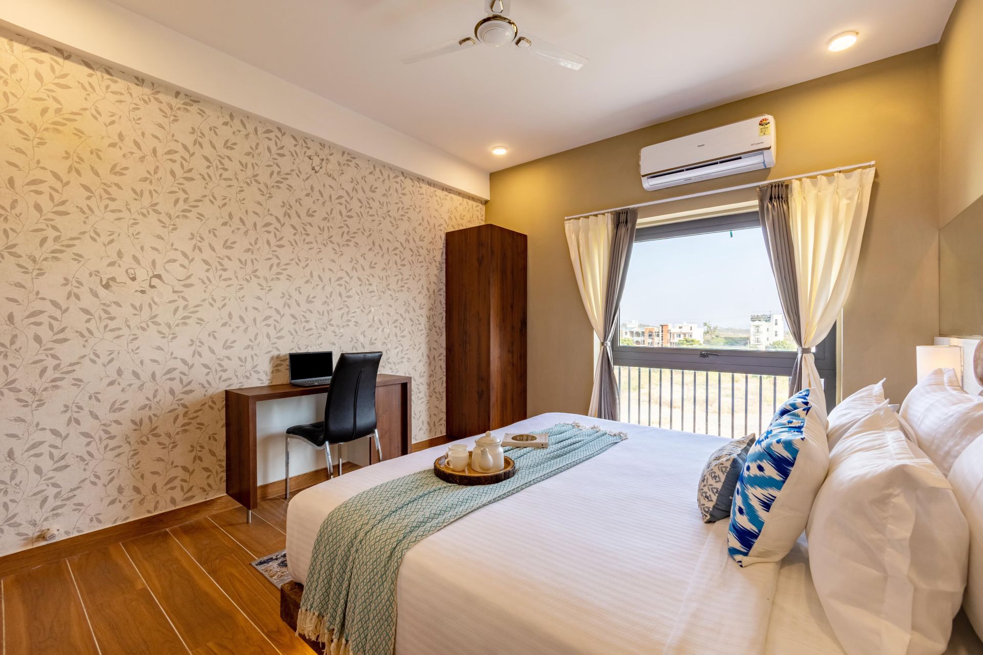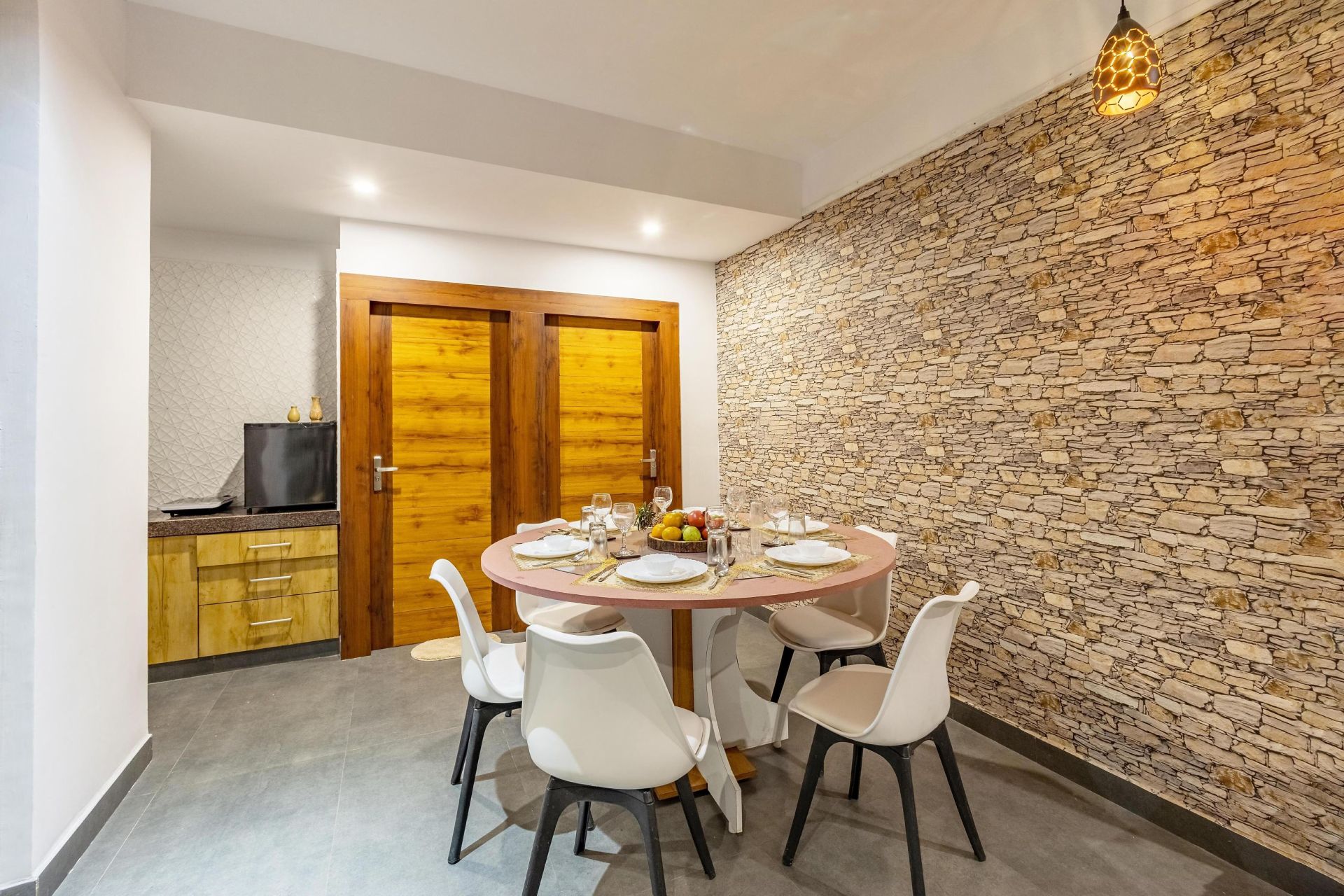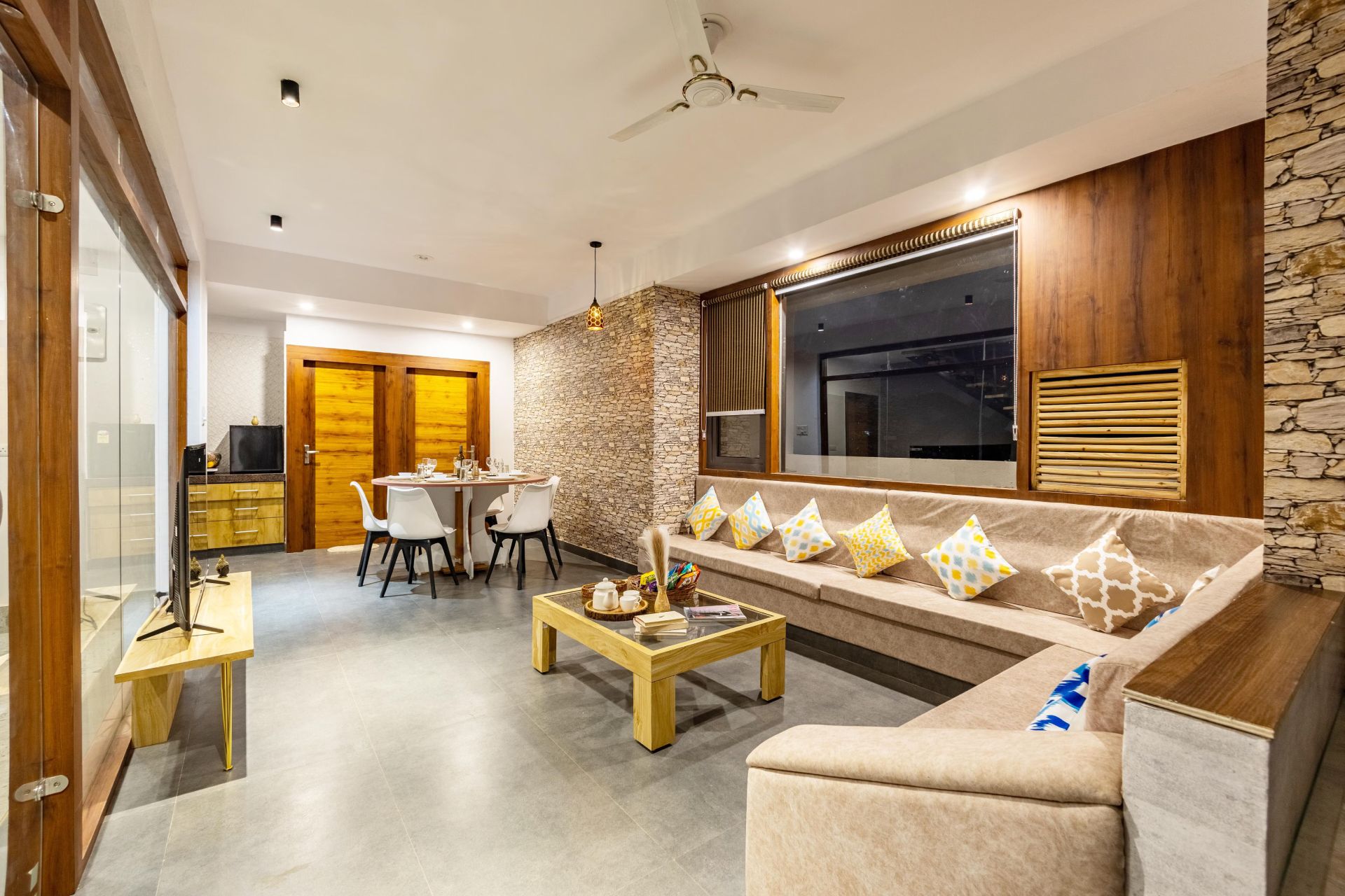 Situated adjacent to the primary highway and boasting magnificent views of the Aravalli hills, this exquisite 4 BHK villa in Udaipur is a true gem. The bedrooms are elegantly designed with wooden flooring and equipped with premium amenities, including one that features a balcony with picturesque views. The living area showcases a minimalist aesthetic complemented by stone clad walls, while the terrace provides stunning panoramas of the landscape. The VODRJ48 villa also includes a dining area complete with a microwave, refrigerator, and essential kitchenware.