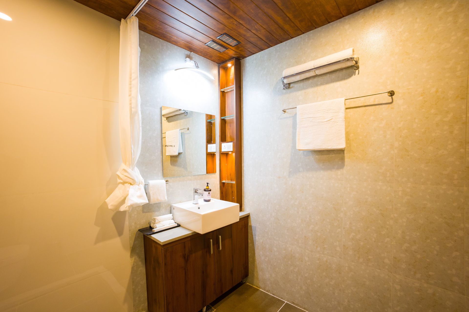 The bathroom features a separate toilet and a shower, along with hair dryers and bath towels. Situated slightly away from the primary highway, this delightful 4BHK villa in Udaipur presents stunning vistas of the Aravalli Hills, serving as an ideal retreat for those who appreciate nature. Crafted with an emphasis on luxury and comfort, each bedroom is adorned with exquisite wooden flooring and high end amenities, while one room includes a spacious balcony that provides unobstructed panoramic views.