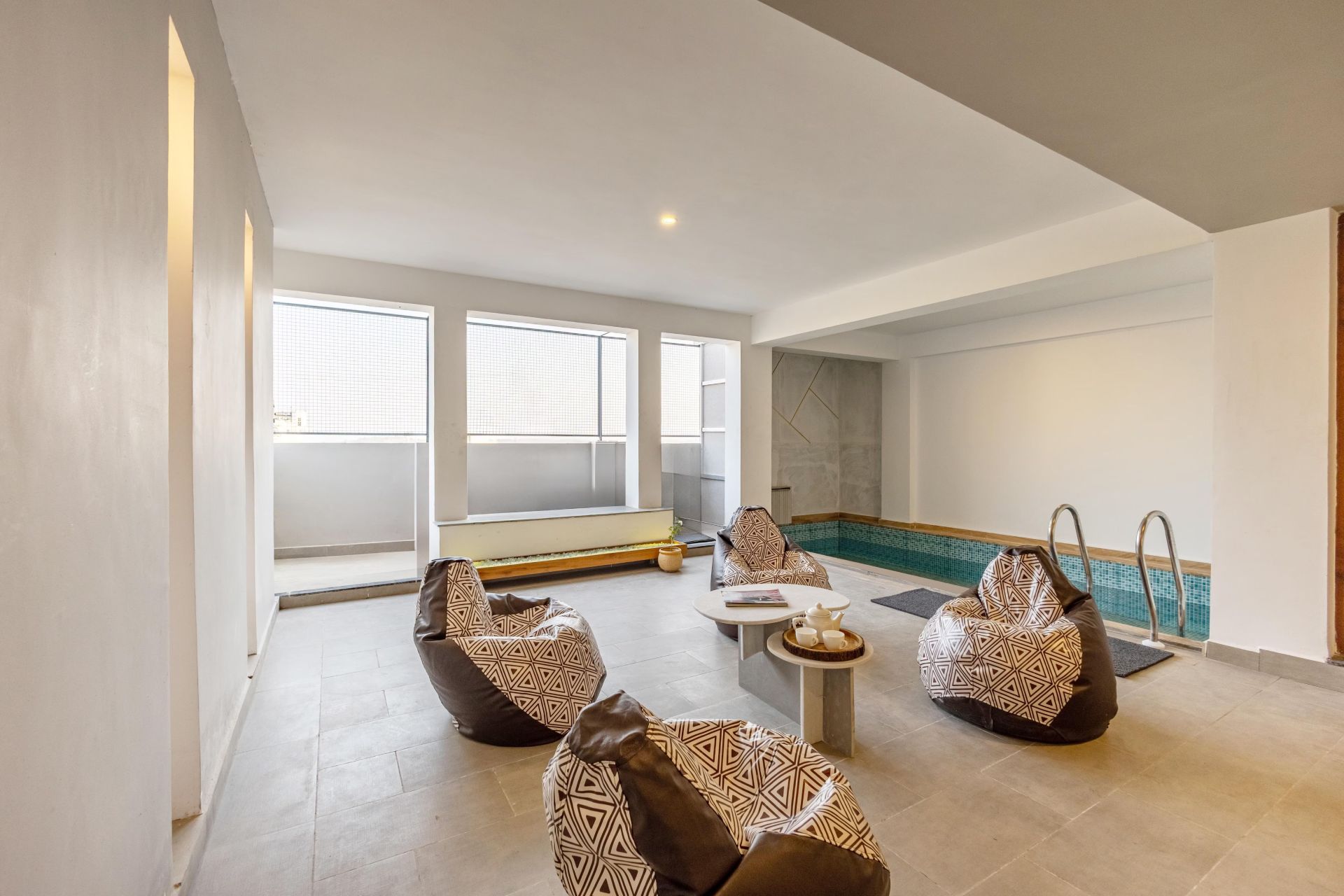 Luxury 4 bhk villa with indoor pool in udaipur, Set just off the main highway, this charming villa in Udaipur offers stunning views of the nearby Aravalli hills, making it the perfect place to connect with nature. Each bedroom is beautifully designed with rich wooden flooring and luxurious amenities. One of the rooms even features a large balcony, offering stunning, unobstructed views.