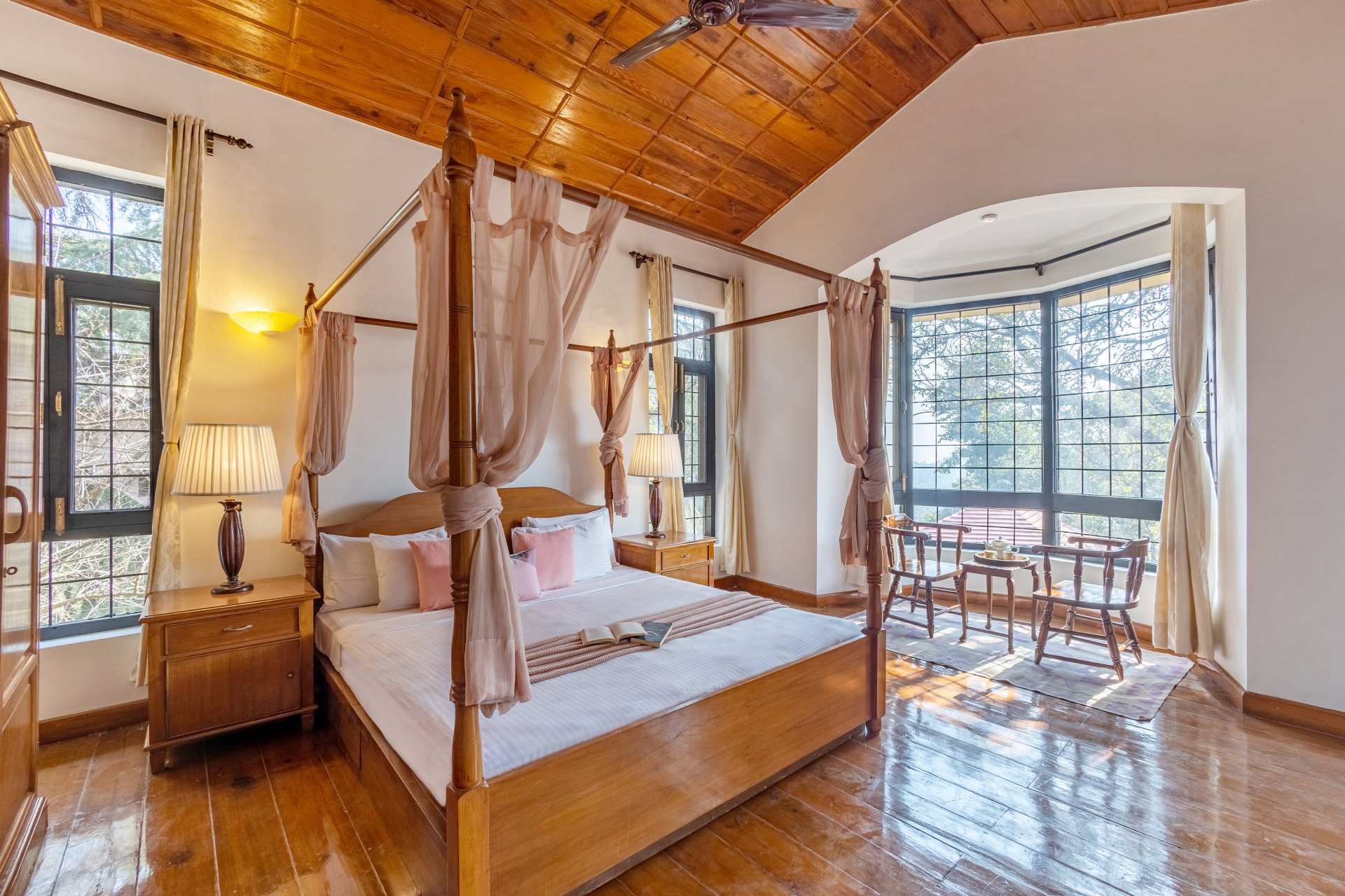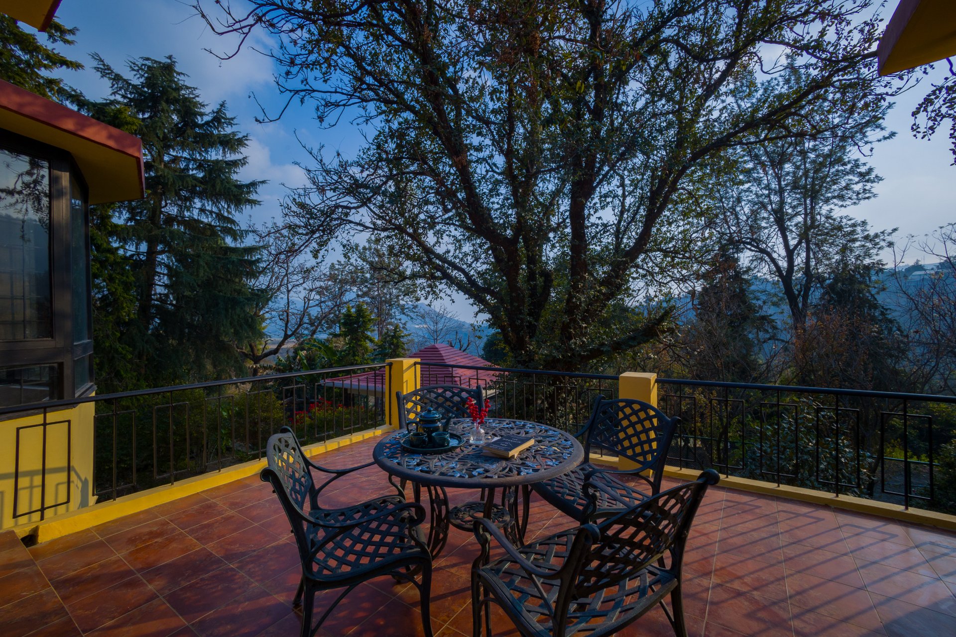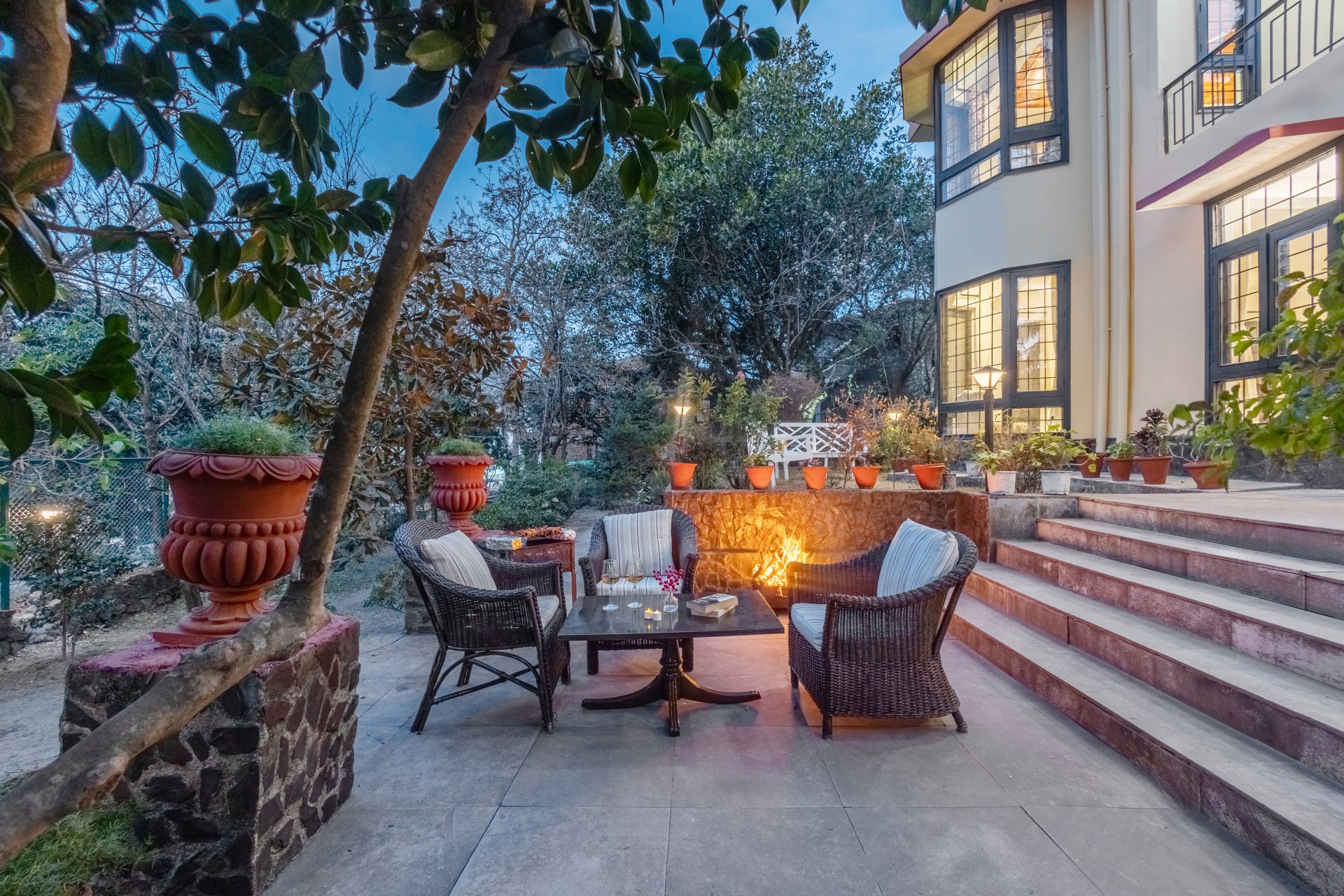 Luxury 4 BHK villa with terrace in nainital Situated just from Bhimtal Lake & en route to Naukuchiatal Lake, this stunning mansion boasts wooden interiors & plush furnishings. The villa features a manicured garden with a charming gazebo, ideal for alfresco dining or bonfires under the stars.