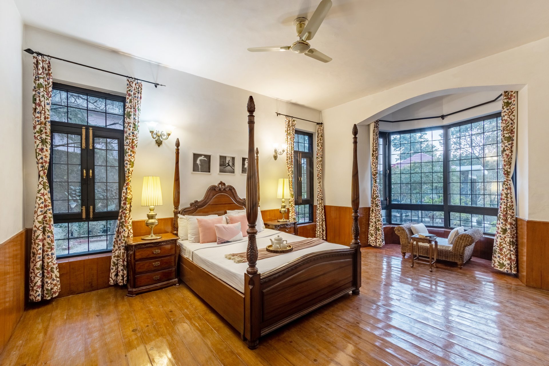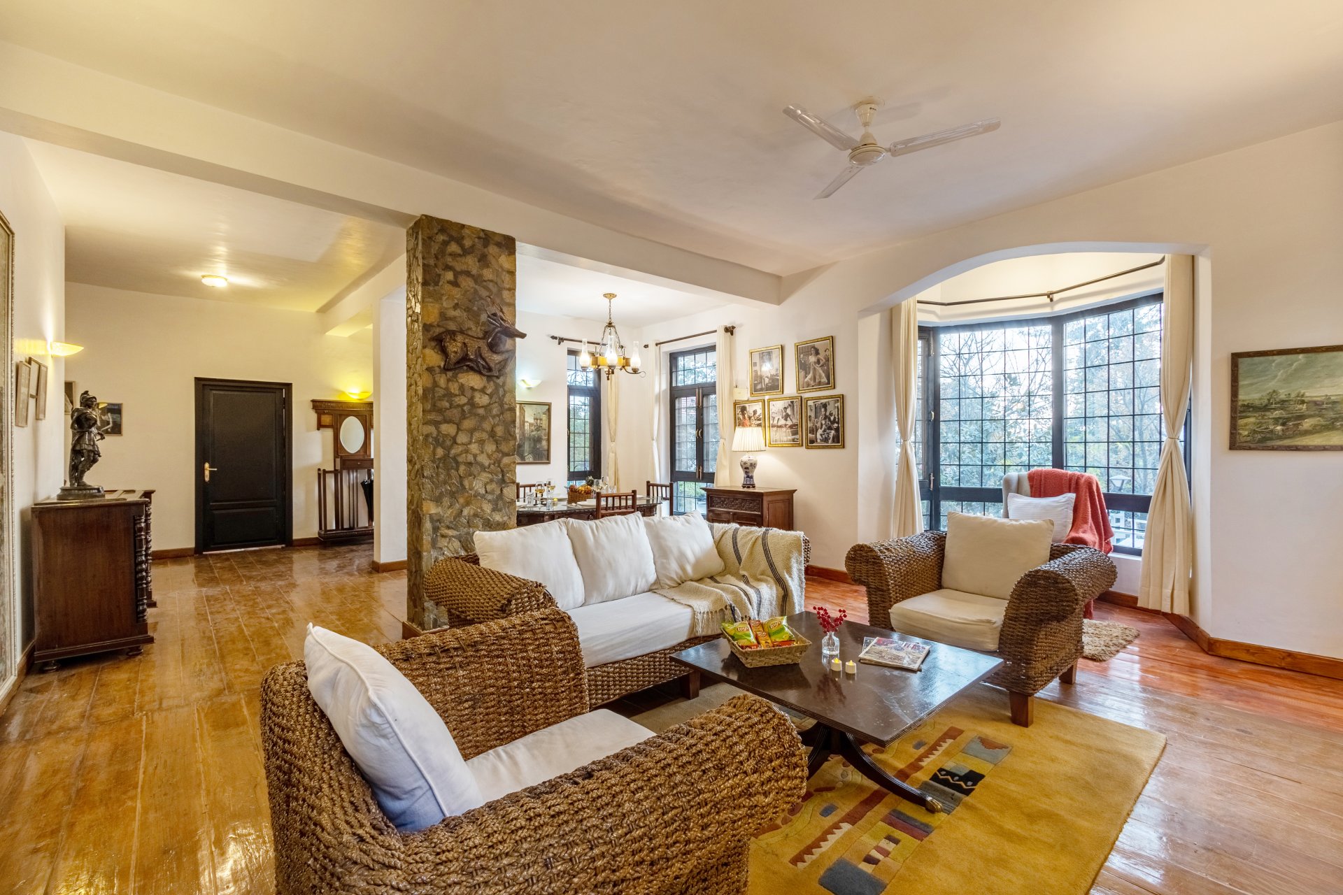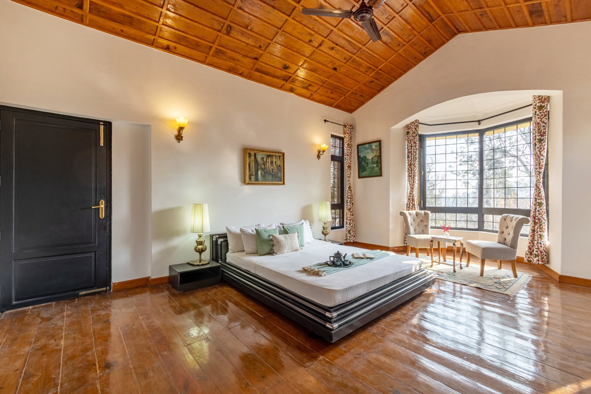 Luxury 4 BHK villa with terrace in nainital Situated just from Bhimtal Lake & en route to Naukuchiatal Lake, this stunning mansion boasts wooden interiors & plush furnishings. The villa features a manicured garden with a charming gazebo, ideal for alfresco dining or bonfires under the stars.