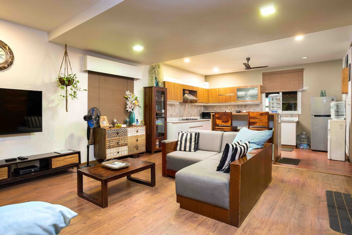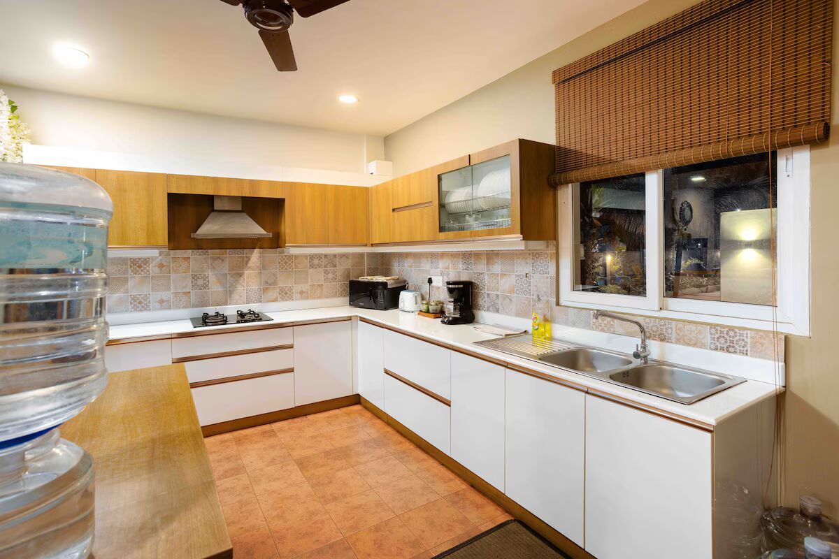 The villa welcomes pets, allowing you to bring your beloved animals with you, and offers round the clock security for your peace of mind. The outdoor beach shack and lawns of the villa can host up to 50 adults, making it an ideal venue for celebrations and events. Ample parking for eight vehicles ensures convenient access for guests attending gatherings. Additionally, the villa provides breakfast, as well as lunch and dinner menus crafted by an in house chef, further enriching the overall experience. Guests can relish in picturesque sunsets, direct access to the beach, and a vibrant community atmosphere.