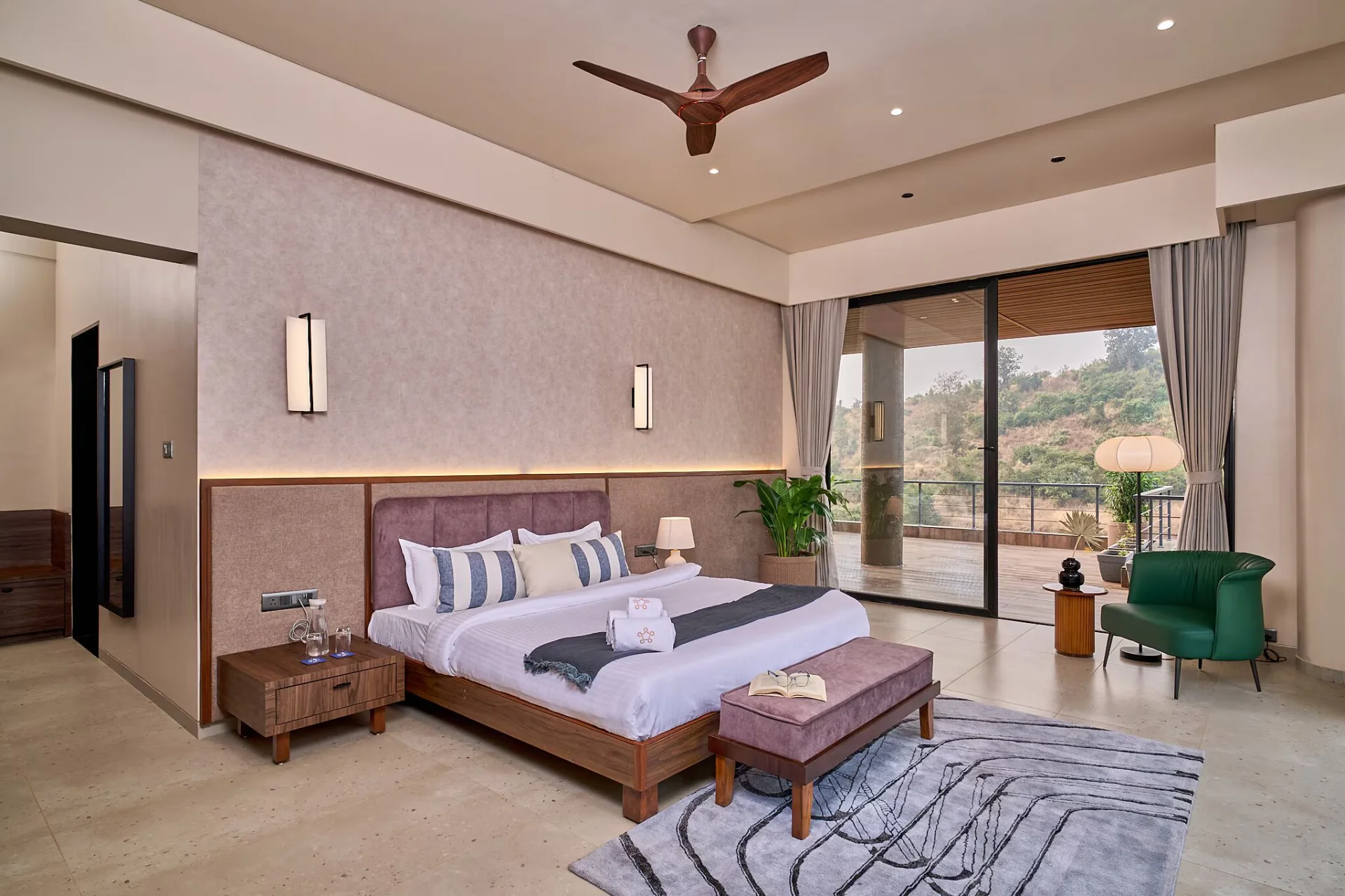 Additional amenities consist of a barbecue, refrigerator, microwave, television, and complimentary toiletries. This Villa is situated 60 km from Chhatrapati Shivaji International Airport in Mumbai. Envision rising to luminous, spacious rooms enveloped by lush greenery and elegant, minimalist aesthetics. Whether you are relaxing by the secluded pool with the soothing sounds of nature surrounding you – VODMH129 Villa is not merely a retreat; it is the sanctuary you never realized you required.We recently spent a magical few days at luxury Villa in Udaipur booked through Villas On Demand and the entire experience was so amazing. Every detail of our stay was Carefully planned, making this trip an unforgettable one for all of us.