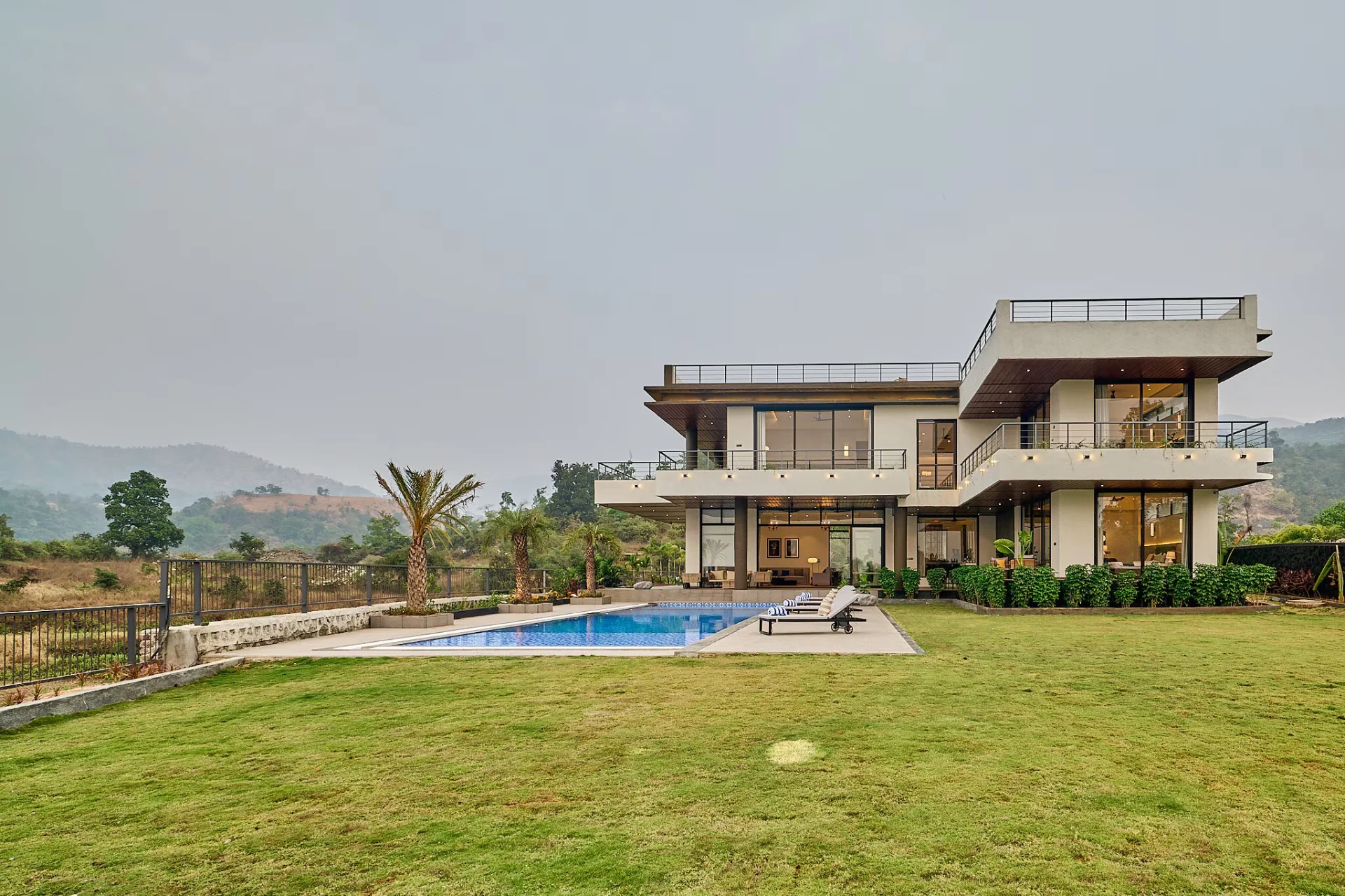 Luxury 5 Bedroom Lawn Villa In Karjat Welcome to VODMH129 Villa – an opulent pet-friendly villa located in Karjat. Envision yourself relaxing by the lake, enjoying your morning coffee while the sun ascends over the water. Nestled close to Morbe Dam, this villa embodies tranquility, comfort, and the beauty of nature.
