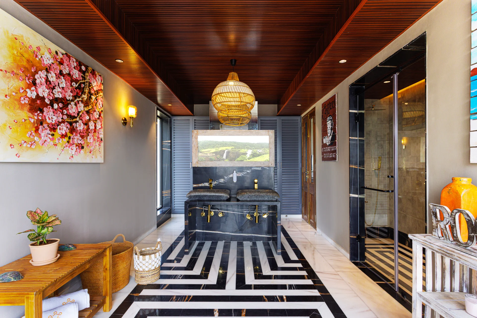 Luxury 5 BHK Lake View Villa In Karjat This may not be Bali, yet every sight, sound, and breeze will evoke that feeling. Tucked away on a hilltop just an hour from Mumbai, VODMH128 Villa is a 5 bedroom pet friendly villa with sweeping Kalote lake view and authentic Balinese aesthetics that instantly transport you to Ubud.