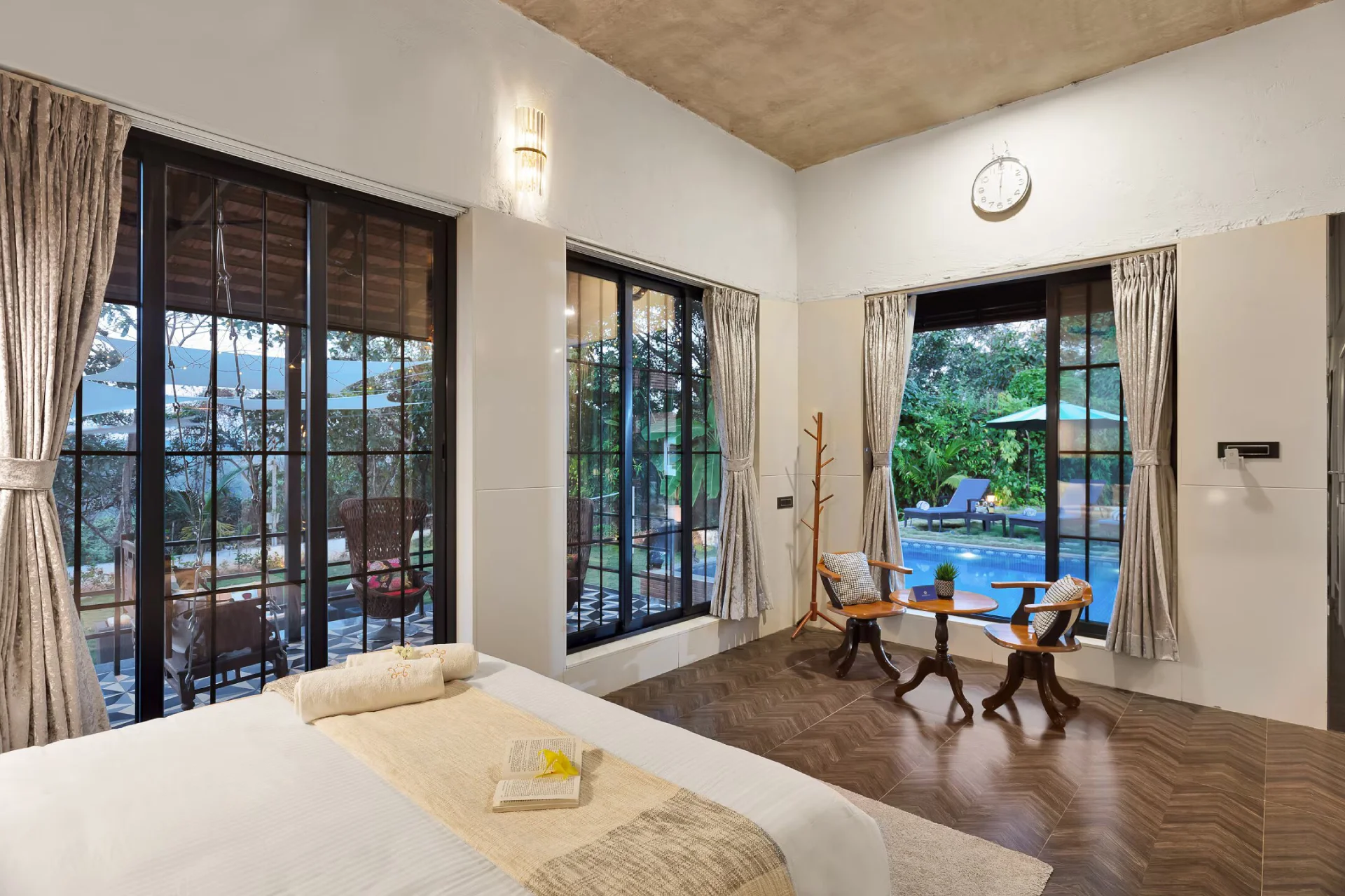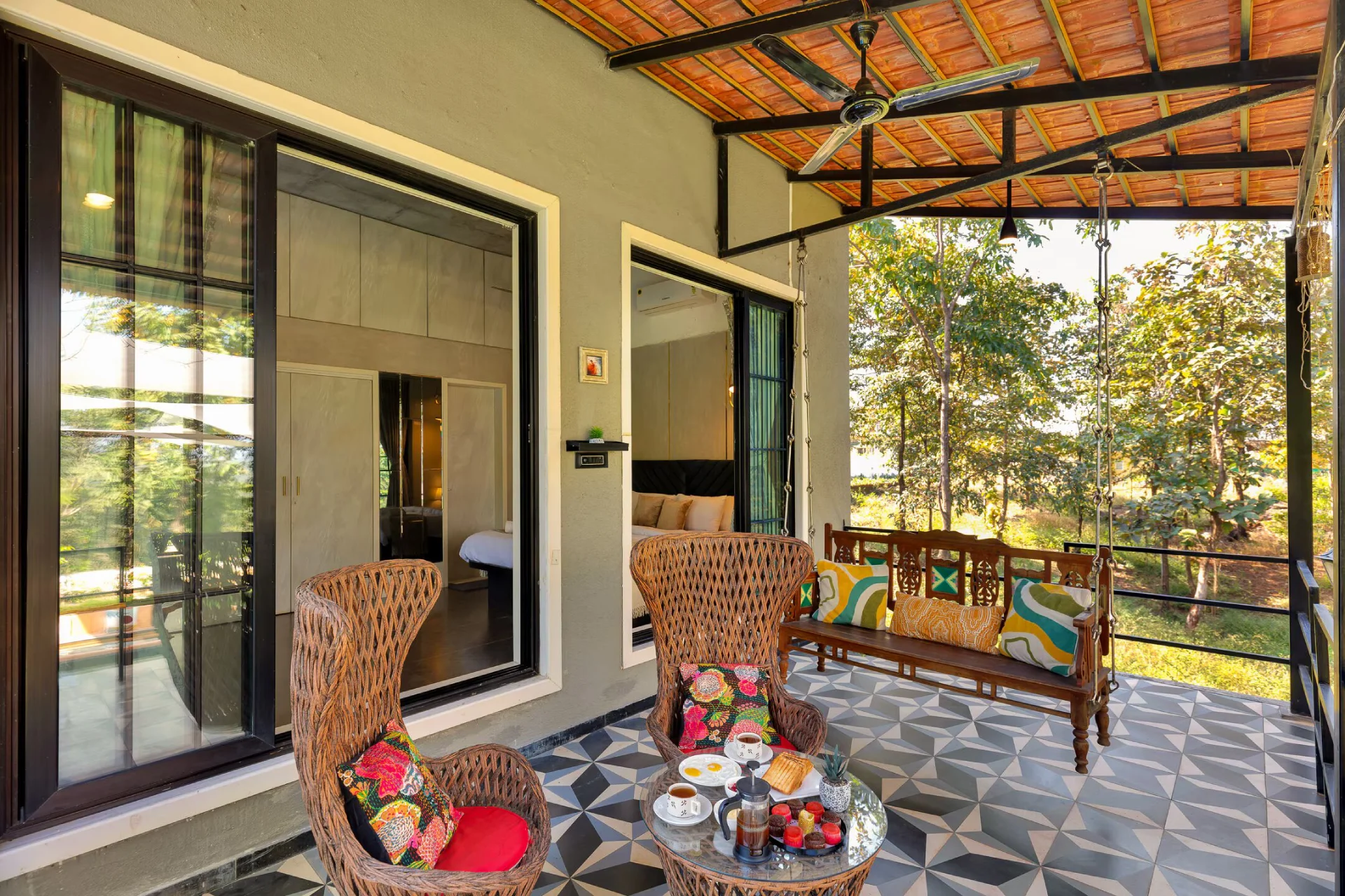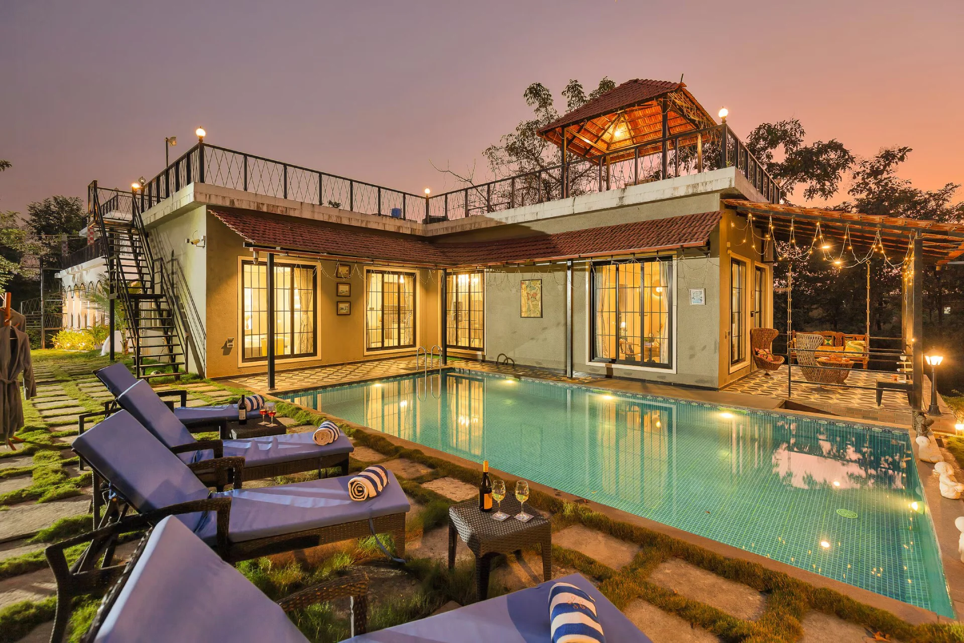 Luxury 5 BHK Pet Friendly Villa In Karjat In the place where the river softly murmurs and the hills hold you close, uncover experiences that are beyond the reach of time. Explore the allure of this pool villa perched on a hilltop beside the tranquil Kikvi River, enveloped by verdant foliage and panoramic vistas.