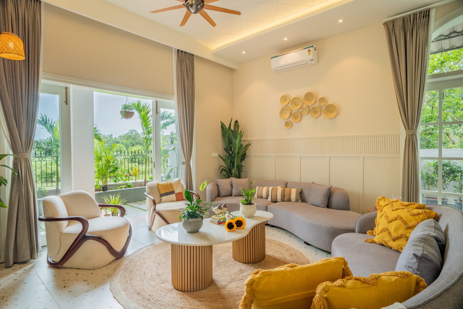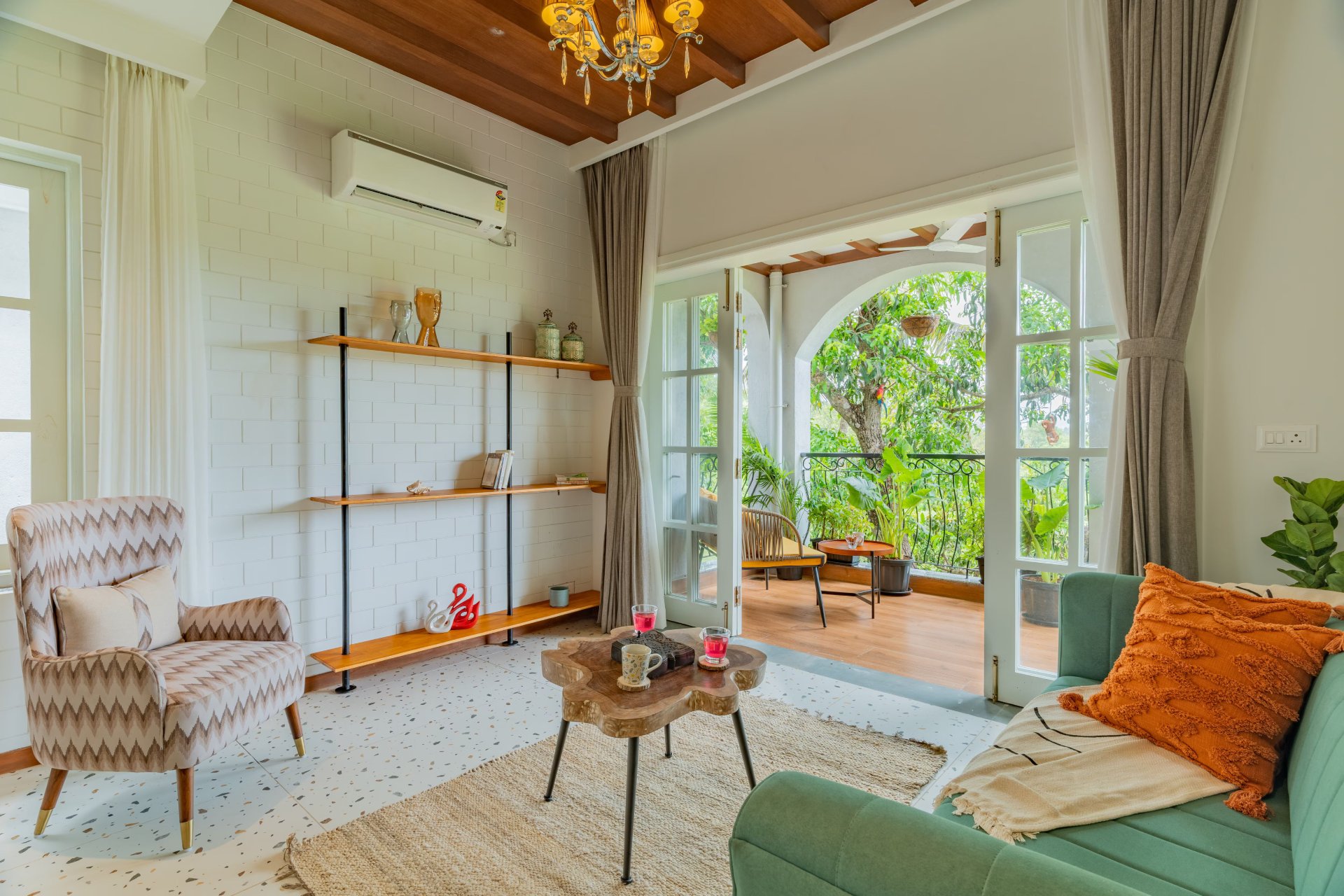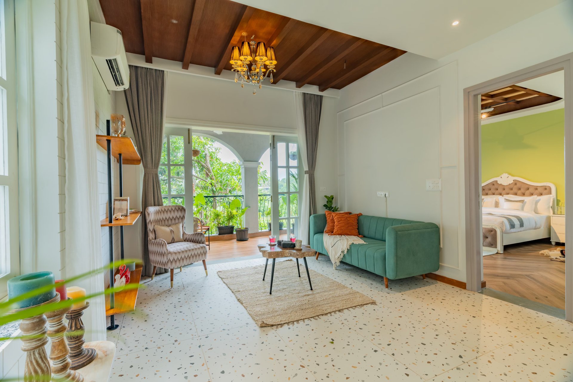 Envision starting your day with the serene calls of peacocks and savoring breathtaking sunset vistas from the terrace. However, there is more to this remarkable 5-bedroom residence. It offers seamless access to the lively beaches of North Goa, including Candolim Beach, as well as significant cultural sites. The architecture of this villa represents a harmonious fusion of contemporary design and traditional Goan features, providing an aesthetic experience that is both invigorating and reminiscent. Central to the homestay’s vibrant outdoor space is a shimmering private pool, encircled by lush greenery. This serene retreat encourages guests to partake in invigorating swims and peaceful interludes.