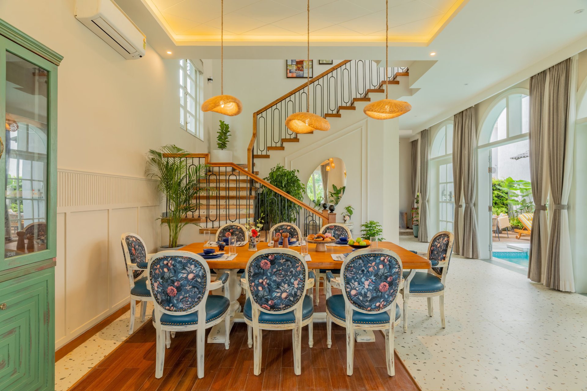 Additionally, the area boasts an elegant bar counter, ideal for savoring beverages in a laid-back, natural setting. This villa distinguishes itself as a pet-friendly haven, inviting guests to bring their beloved pets along for a tranquil getaway. With ample outdoor spaces for pets to explore and enjoy, the homestay guarantees that all family members can experience a lavish stay. Guests can choose between an à la carte or Asian breakfast.