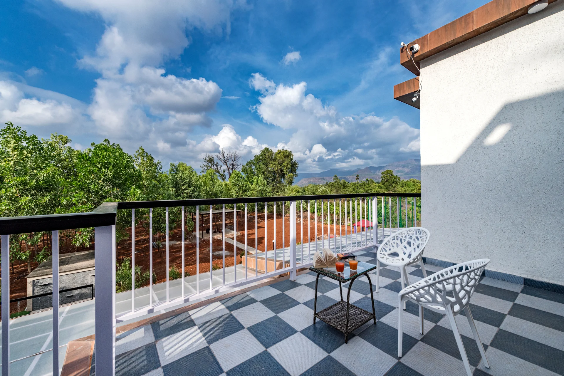 VODMH149 Villa in Karjat presents a spacious accommodation featuring six bedrooms and six bathrooms. The property comprises a living room, dining area, and family rooms, ensuring comfort for all visitors. Guests can take pleasure in a swimming pool with a view, a sun terrace, and a lush garden. The outdoor area includes an outdoor fireplace, barbecue facilities, and seating areas, ideal for relaxation and leisure.