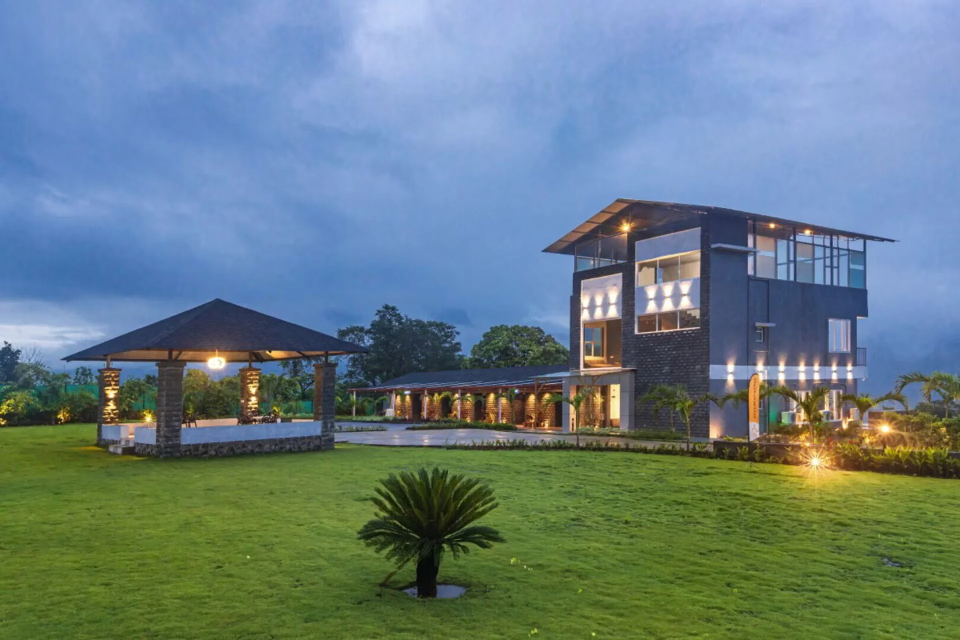 Luxury 8 BHK Villa With Gazebo In Karjat Recognized as the ‘Party-Perfect Homestay Of The Year’, this villa in Karjat includes a magnificent pool, an outdoor bar, a gazebo, and verdant surroundings. Host memorable gatherings or corporate offsites amidst unbeatable views of Morbe Dam, complete with a rain dance setup!
