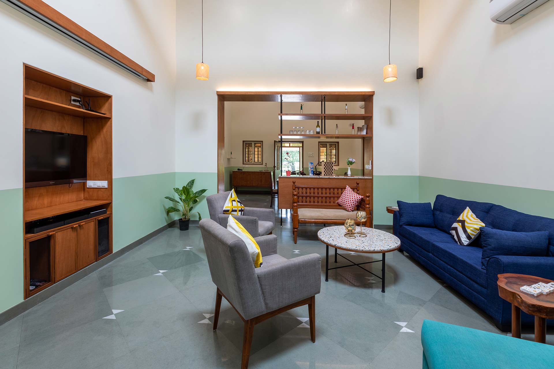 Guests will find a microwave available in all units. The kitchen facilities consist of a microwave oven and a refrigerator, conveniently located in a designated dining area. Villa VODMH50 offers a unique blend of heritage charm and modern amenities, featuring a swimming pool, gazebo, projector room, and indoor games, along with comfortable seating areas for guests. The property boasts picturesque garden views and is conveniently located 5.5 km from Kune Falls and 10 km from Lion’s Point.