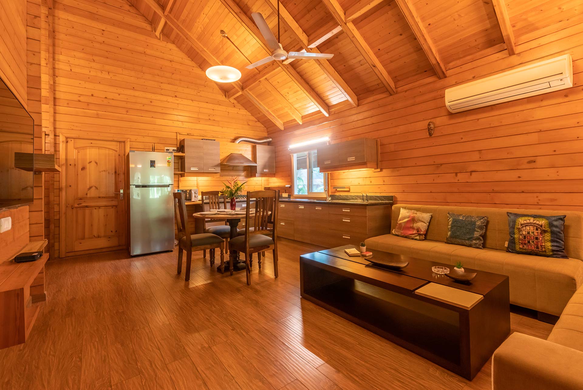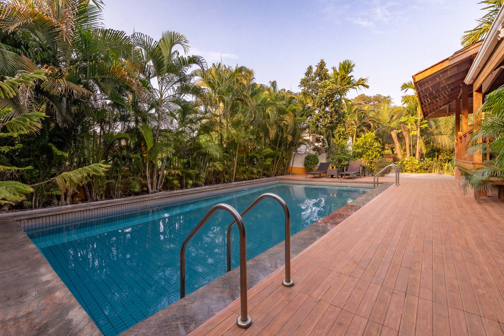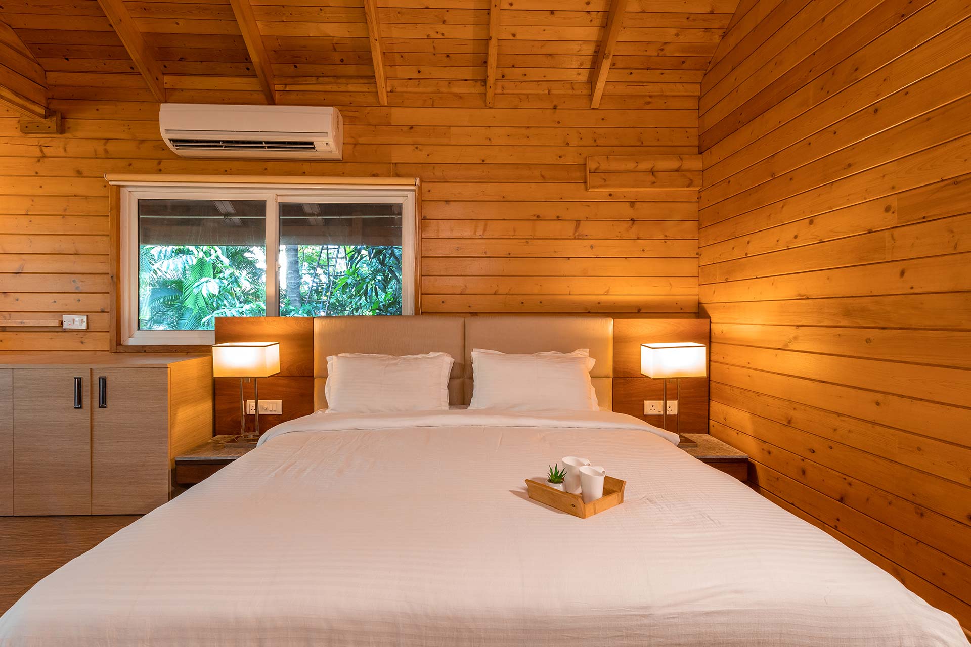 Elegant 3 BHK Villa in Goa Beautiful and spacious villa in Goa. This gorgeous wooden cabin in Goaโ€™s most thriving neighbourhood is the perfect place to unplug for a few days, reconnect with your loved ones and simply enjoy the amazing food options in and around the property. The gleaming horizon makes for a beautiful backdrop to the swaying palm trees, and the whiff of pepper plants in the lawn will keep you coming back for more.