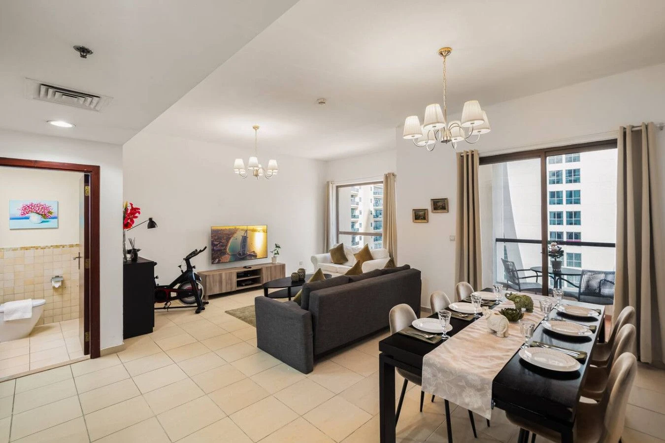 Stunning 2BR Apartment on JBR Beach Our residence is merely a 3-minute stroll to the beach, ideal for enthusiasts of sun, sand, and seaside activities! Everything you require is conveniently located in one area, ensuring a seamless and relaxing stay.